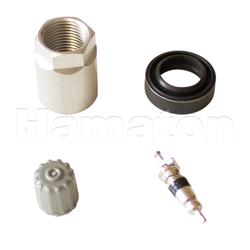 Service kit, including: 1 nut, 1 rubber grommet, 1 plastic washer, 1 valve cap and 1 valve core.