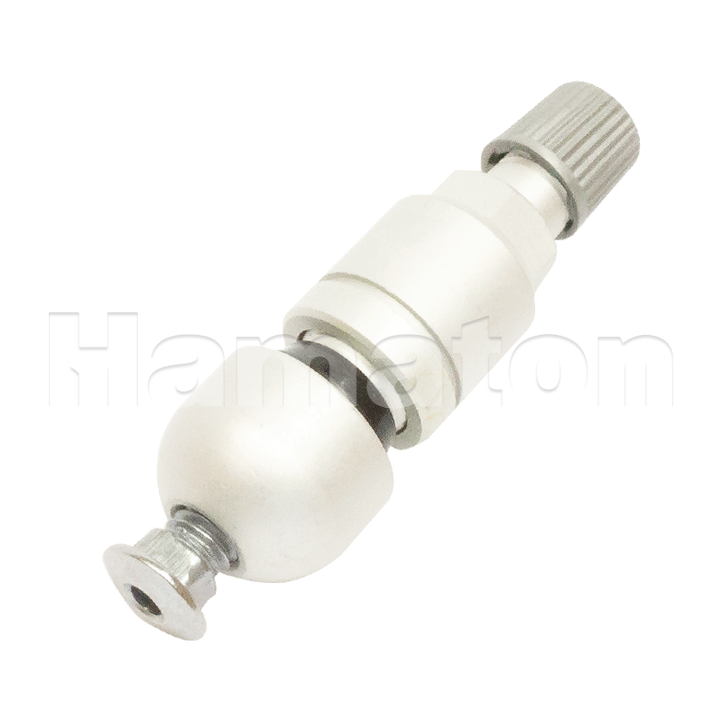 A box of 10 clamp-in valves, with each including: 1 valve stem, 1 nut, 1 rubber grommet, 1 screw, 1 valve cap and 1 valve core.