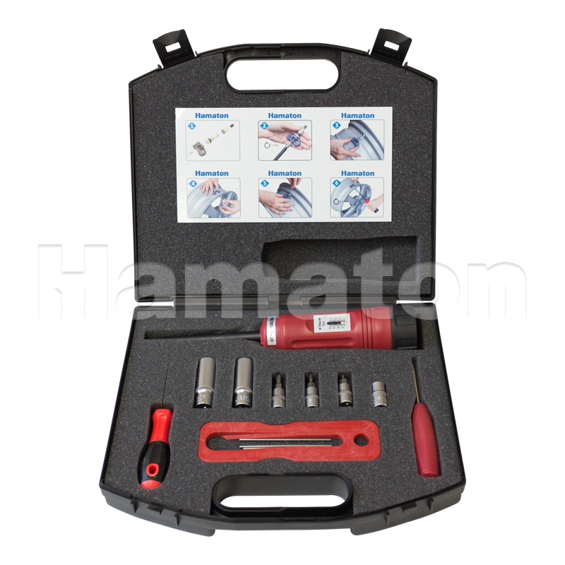 This TPMS tool kit comes complete with:- Calibrated torque tool including: